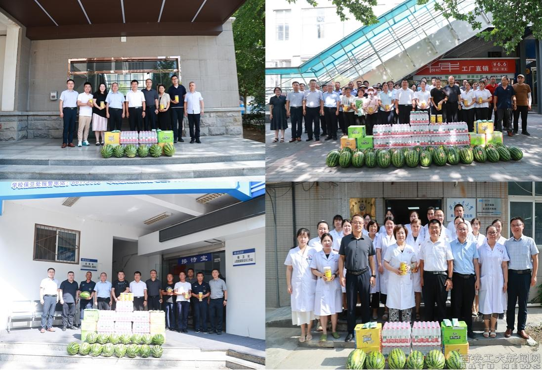 (本网讯)为充分体现学校党政对教职工的关心关爱,7月15日—16日,党委书记侯成义,校长姚尧,党委副书记马福,副校长闫莉、何春水先后代表学校慰问了招生工作人员、总务处、保卫处、党办校办、校医院和驻村干部,详细了解了招生录取、后勤保障、安全保卫和乡村振兴帮扶等工作情况。