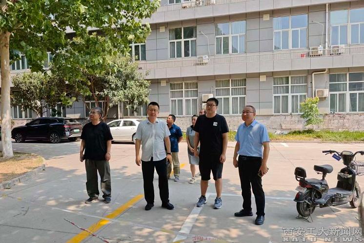 (本网讯)8月4日上午,副校长何春水深入一线检查指导暑期校园维修改造及餐饮保障工作,总务处处长李明、修缮科等相关科室人员参加检查。