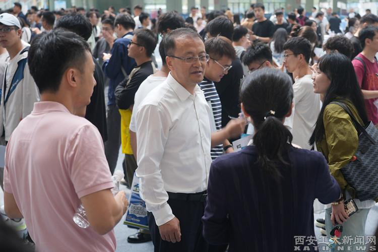 校领导,就业处与各学院负责人、辅导员等深入现场,密切关注招聘进展,与毕业生和用人单位亲切交流,现场提供精准就业指导与周到服务。