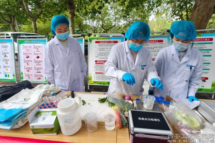 活动现场设置有“尚德守法·共享食安”主题宣传展台,精心准备了食品安全法律法规、常见食品安全隐患、如何辨别假冒伪劣食品等宣传资料,未央区市场监督管理局工作人员、学生宣传志愿者面对面与师生交流、宣传校园食品安全知识。